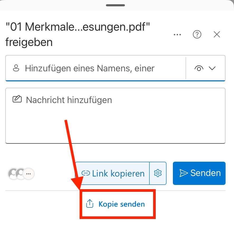 Beachte: Teilen auf Onedrive bedeutet ansonsten «Freigeben für eine andere Person» Damit wird die Datei nicht kopiert sondern du erteilst einer anderen Person Zugriff auf die gleiche Datei.