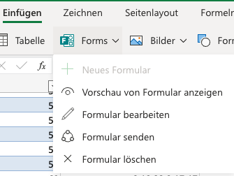 Im Tab einfügen erhältst du ein Menu Forms. Erstelle dort ein neues Formular. Auf diese Weise kannst du maximal 1 Formular einfügen. Solltest du weitere Formulare verknüpfen wollen, brauchst du eine Verlinkung zu einer anderen Exceldatei